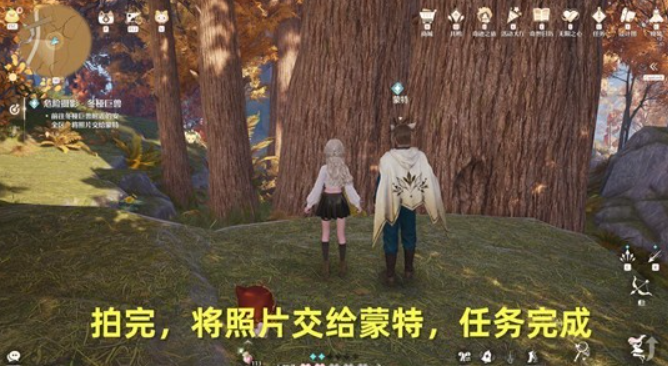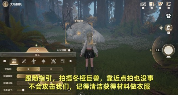 跟随指引,找到冬桠巨兽,这个靠近拍照也没事,不会攻击我们;
