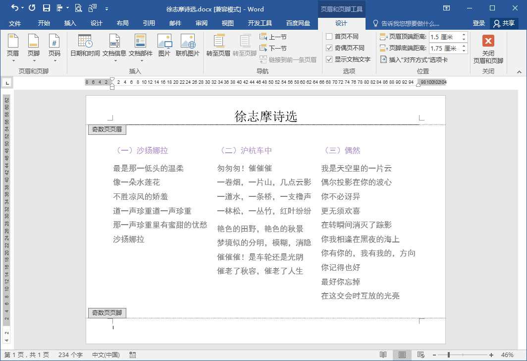 鼠标双击页面底端,进入页眉页脚编辑状态。
