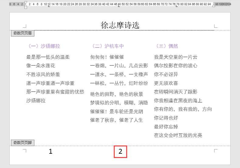 按键盘上的tab键,将鼠标光标定位在页脚第二栏文本页码要显示的位置(与标尺上第二个左对齐制表位对齐),输入域代码{=3*{page}-1},同时按Shift+F9切换域即可显示第二栏文本的页码“2”。