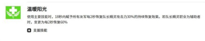 是克拉拉的支援被动技能,也是一个强大的团队增益效果。触发后,会持续18秒,期间赋予所有队友一个持续治疗效果,每秒恢复队长30%的体力。如果克拉拉自身担任队长,这个效果会得到强化,能为同为辅助定位的队友提供每2秒60%的体力恢复。这使得克拉拉在队长位置上,能为团队提供非常可观的持续续航能力。
