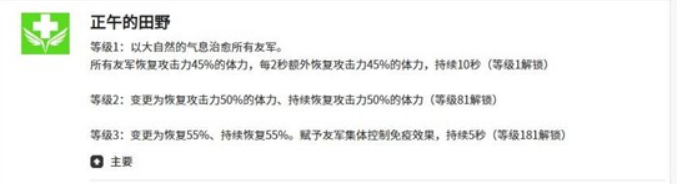 克拉拉的核心治疗技能释放后,能为全体友军提供基于克拉拉攻击力45%的持续恢复效果,并且每隔两秒还会额外回复体力,整个效果的持续时间长达10秒。当这个技能提升到等级三时,基础恢复数值会提升至攻击力的55%,并且在克拉拉达到181级后,还能为全体友军附加集体免疫控制的效果,极大地提升了团队的生存和作战稳定性。