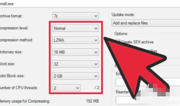 3、在“存档格式”下拉菜单中选择 .7z(必须选择此格式才能创建自解压文件)。勾选 “创建SFX存档” 选项(此选项通常在存档格式下方或右侧,中文界面会明确标注)。