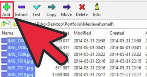 2、单击顶部工具栏的绿色 “添加” 按钮(或按快捷键 Alt+A),弹出“添加到存档”对话框。