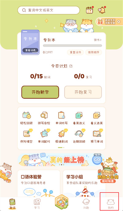 1、打开奶酪单词软件,进入软件后点击界面下方的【我的】。