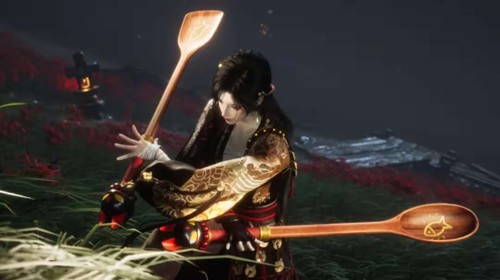 同期上线的双刀武器外观「午饭匙盛」售价仅60长鸣珠,设计巧妙集齐勺子、筷子和铲子三种厨具,将"五阴之苦,可化一饭之欢"的禅意与市井趣味完美融合,持之仿佛可随时起锅炒菜,为肃杀江湖增添一抹诙谐色彩。