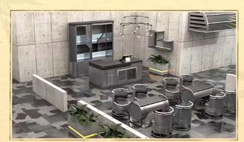 清水混凝土墙面自带斑驳肌理,金属吧台配银色网格镂空,工业油桶改装桌椅,打造硬核与冷冽感兼具的咖啡馆氛围。战令升级过程中还可持续解锁5个星铸石。