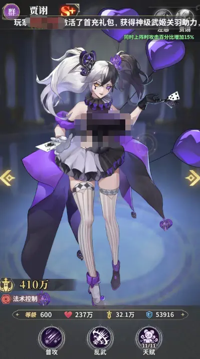 6、贾诩作为法系控场手,技能可随机选取3名敌方单位施加115%法术伤害,并附带“乱舞”效果。“乱舞”会令目标陷入不可预测的异常状态,包括沉默、受伤、10%减伤或无法普攻等,大幅削弱敌方行动稳定性与输出连续性,为我方追击节奏争取关键窗口期。