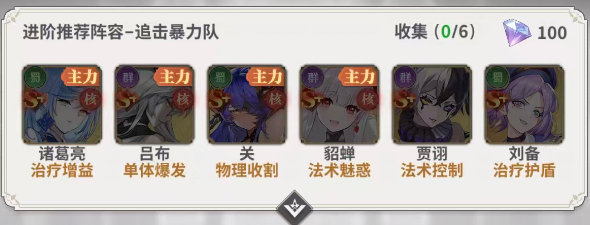 1、该阵容采用“4+2”配置结构:四名主力承担核心输出与追击循环,两名辅助提供生存保障与控制补充。其中,诸葛亮、吕布、关羽、貂蝉为第一梯队,负责技能衔接、怒气管理与追击触发;贾诩与刘备作为第二梯队,分别强化群体压制与持续续航能力。