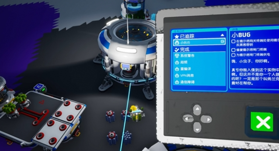 2.完成故事线之后就会解锁任务,这个任务主要是以剧情探索作为核心,玩家跟着任务提示,在完成互动之后即可。整个过程都没有复杂的操作,主要的作用就是铺垫背景故事,让玩家了解整个星球的秘密。在完成之后就可以无缝衔接维护问题任务任务主要是围绕设备维修还有设施维护展开。需要玩家在星球的表面寻找指定的设备,并且完成调试,推动剧情向前发展。