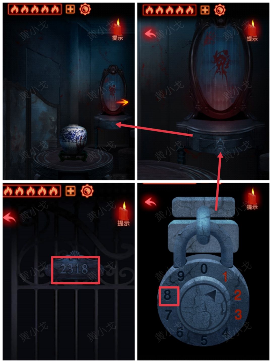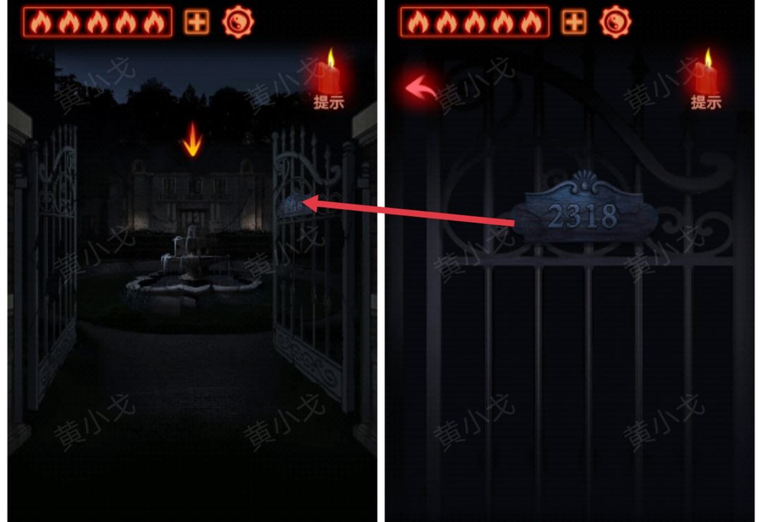 3.(钱府-暗门)点击梳妆台的抽屉,根据门牌号输入密码:2318