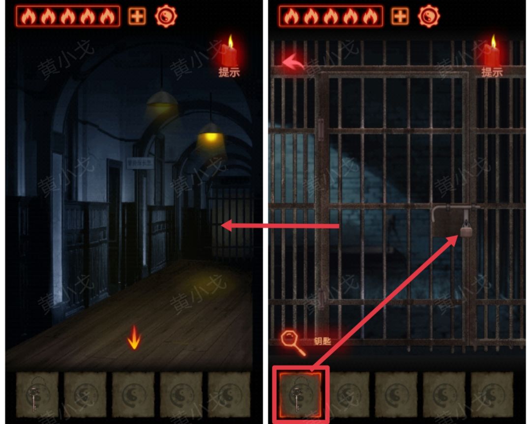 13.(警局过道)点击监狱的门,用【钥匙】打开,进入监狱