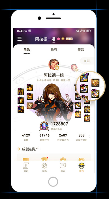 个人主页更有角色卡,实时查看角色装扮形象、装备、强化增幅、希洛克、遴选、附魔、徽章、名望值、战绩、周报等数据。