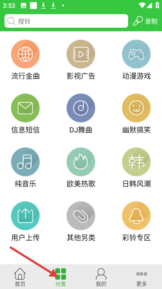 2、分类界面提供丰富类别,从流行金曲到影视广告,还有动漫游戏等,满足多元需求,轻松查找心仪铃声类型。