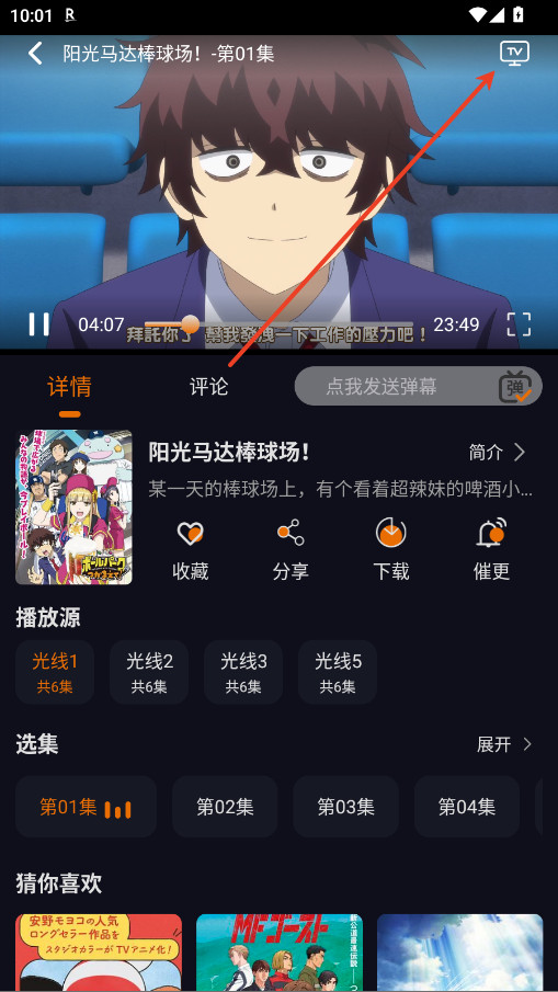 4、点击作品封面进入到详情页,可以看到作品简介,播放源以及选集