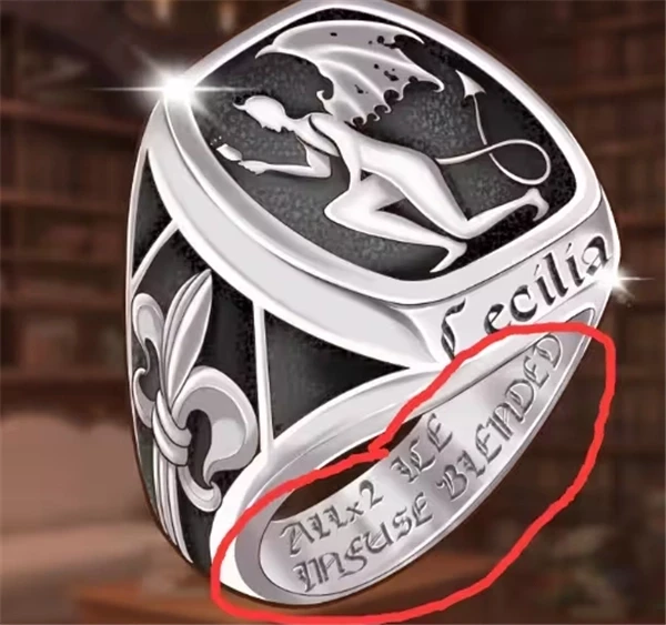 游戏中唯一的隐藏酒谱塞西莉亚酒刻在男主戒指的内部。