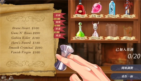 游戏特色独特的调酒模拟玩法,考验玩家的技巧和创意。