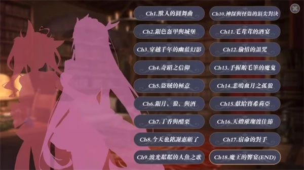 游戏内容全部一共十八章,但是在游戏中的章节并不会紧凑直接从头到尾,用游戏中的十八天就进行完毕。每一章进行完后会给出一天的空白时间进行一些非主线人物的攻略cg收集,还有日常的调酒收入等。